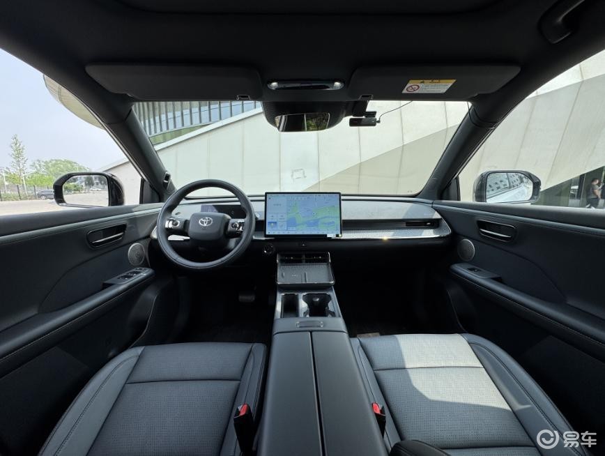 进入车内,广汽丰田铂智3X的内饰设计以简洁为主,配备14.6英寸的悬浮式中控屏和8.8英寸的全液晶仪表盘组合。车机系统全系标配了高通骁龙8155芯片,这保证了系统操作的流畅度,并支持四音区语音识别,方便车内不同位置的乘客下达指令。