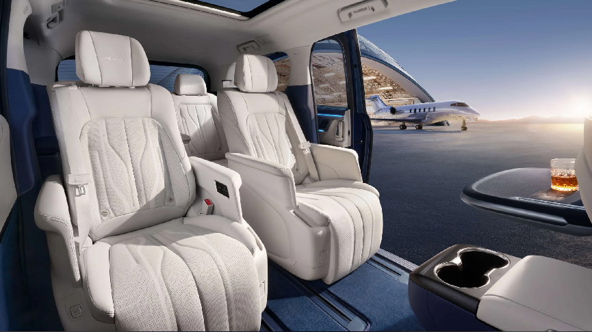 最打动家庭用户的是座椅配置:第二排 Air SPA 双零重力座椅支持 152° 超大靠背角度,16 点式按摩 + 通风加热,一键切换零重力模式,长途乘坐堪比移动按摩椅;第三排更是同级标杆,不仅支持前后、靠背调节,还配备了通风加热功能,520mm 长的座垫完全能支撑成年人的腿部,180cm 乘客坐进去膝盖还有一拳余量,再加上三组儿童座椅接口,家庭出行的舒适性直接拉满。此外,7.5L 智能冷暖冰箱支持 - 6℃~50℃调节,断电保温 12 小时,二排一体式双桌板能满足办公、用餐需求,这些细节设计真正做到了 “座座皆奢享”。