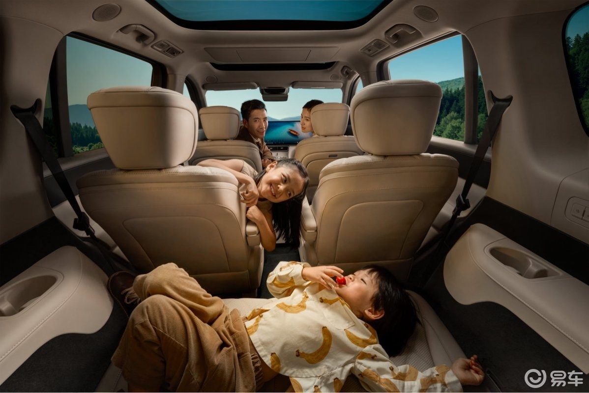 空间设计很贴合家庭需求,5205×1998×1800mm 车身尺寸搭配3120mm轴距,主驾配备卷帘式腿托,二排有1022mm腿部空间,三排是全电动座椅,即便身高1.9米的乘客乘坐第三排,也能保持舒展姿态。同时支持一键语音解锁1.8m大床,再加上1590L后备箱、40处储物空间和三温区空调,日常通勤或露营出行都能满足。