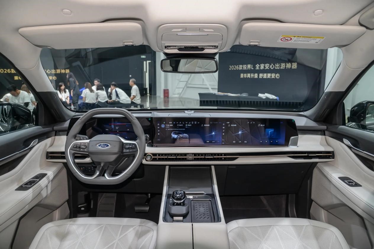坐进2026款锐界L车内,最吸引眼球的莫过于12.3英寸液晶仪表盘+27英寸4K中控屏的组合,直接提升了整个座舱的科技感。2026款汉兰达也采用了液晶仪表盘的设计,尺寸也是12.3英寸,并且悬浮式中控屏的尺寸也升级到15.6英寸,虽然和2026款锐界L存在差距,但也算是中上游的水准。
